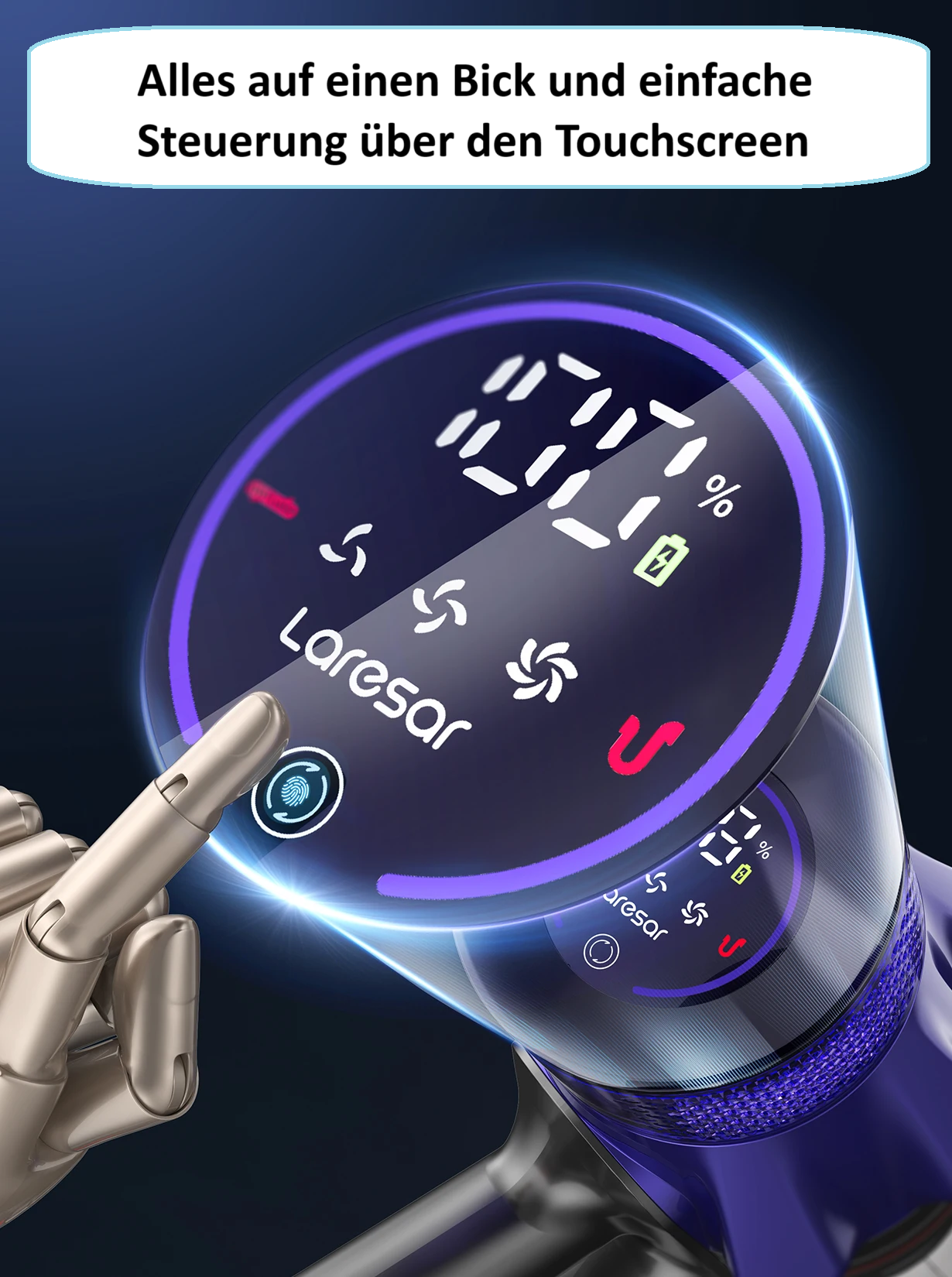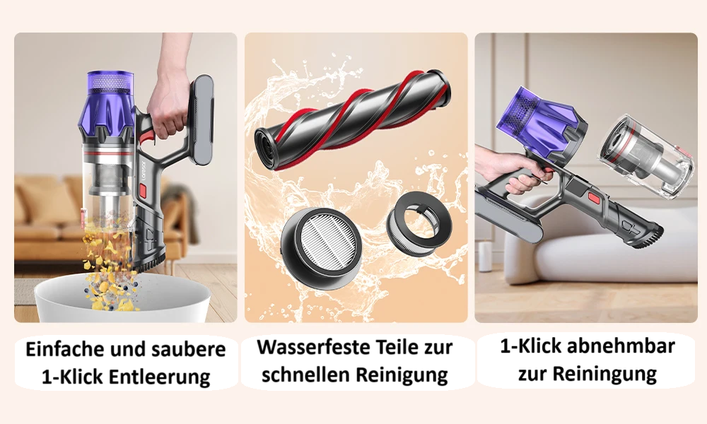 Entdecken Sie maximale Sauberkeit mit dem modernen kabellosen Akkustaubsauger ohne Beutel von Laresar – ideal für Haushalte mit Haustieren, Allergikern und alle, die Wert auf Effizienz und Flexibilität legen. Der leistungsstarke Brushless-Motor im Bürstenkopf sorgt für eine kraftvolle Tiefenreinigung auf Hartböden, Teppichen und Polstern. Dank des verstellbaren Saugstabs und des frei stehenden Designs reinigen Sie mühelos auch schwer erreichbare Stellen – ganz ohne Kabelsalat.
