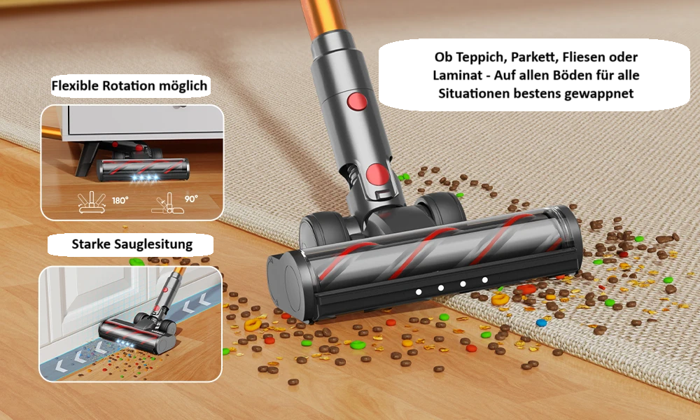 Vielseitig einsetzbar auf Teppichen, Laminat, Fliesen und mehr