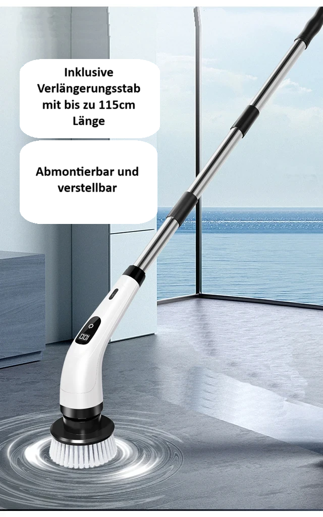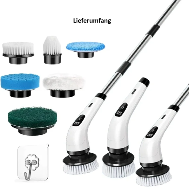 Multifunktionale Kabellose Elektrische Reinigungsbürste "Brushi" – 360° Power-Schrubber mit 6 Bürstenaufsätzen & Teleskopstiel